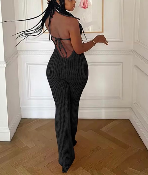Knit Flowers Jumpsuit Black